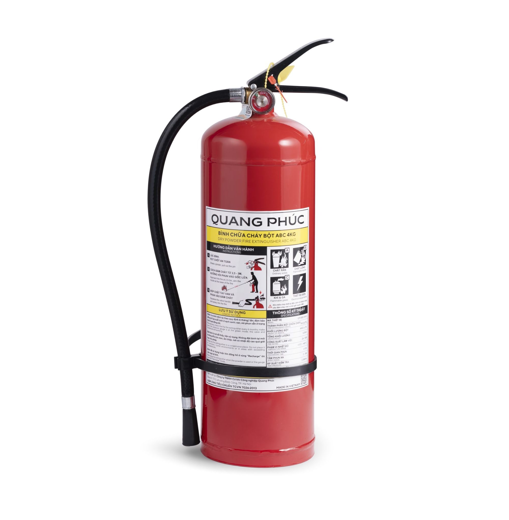 Thông số kỹ thuật của bình bột chữa cháy Quang Phúc ABC 4kg